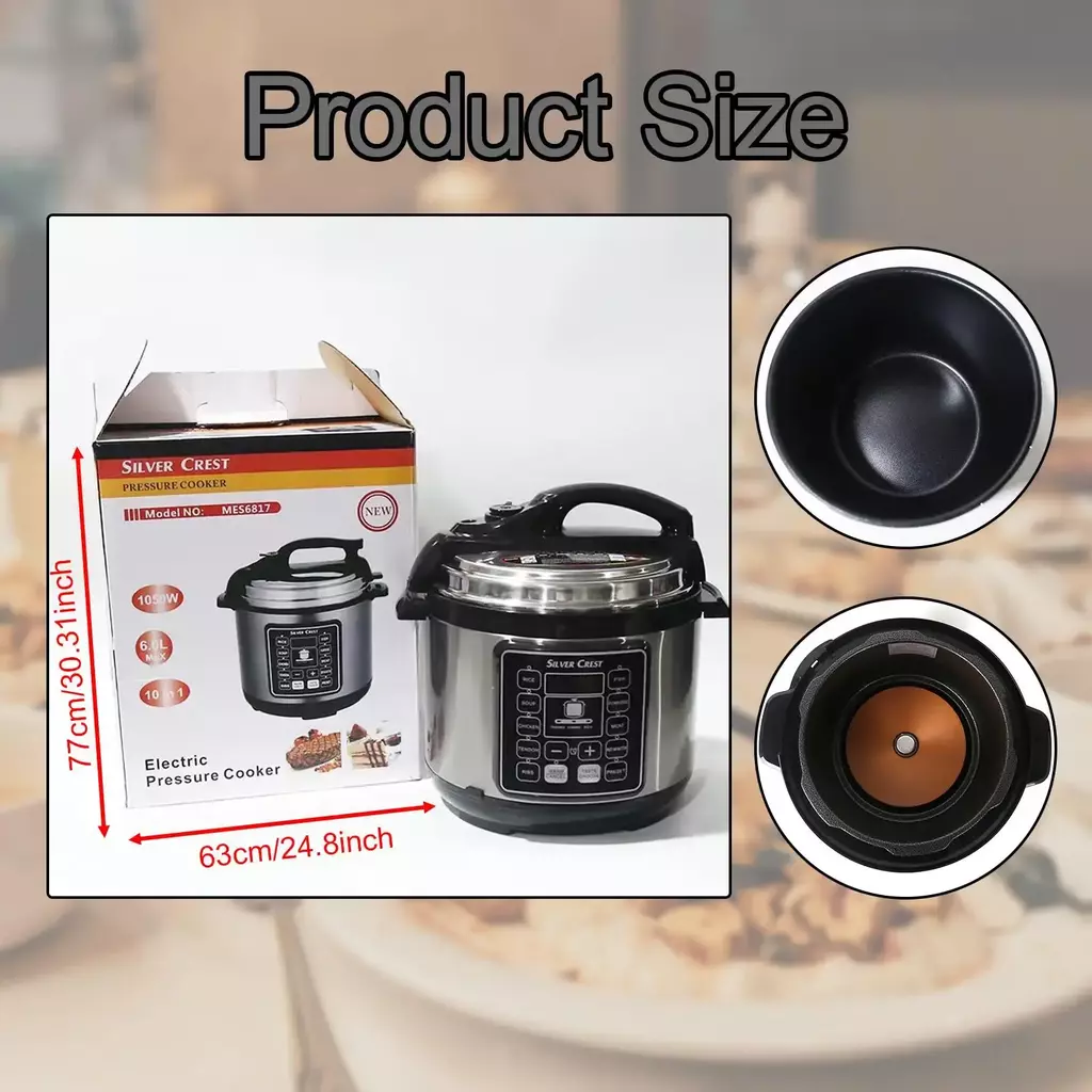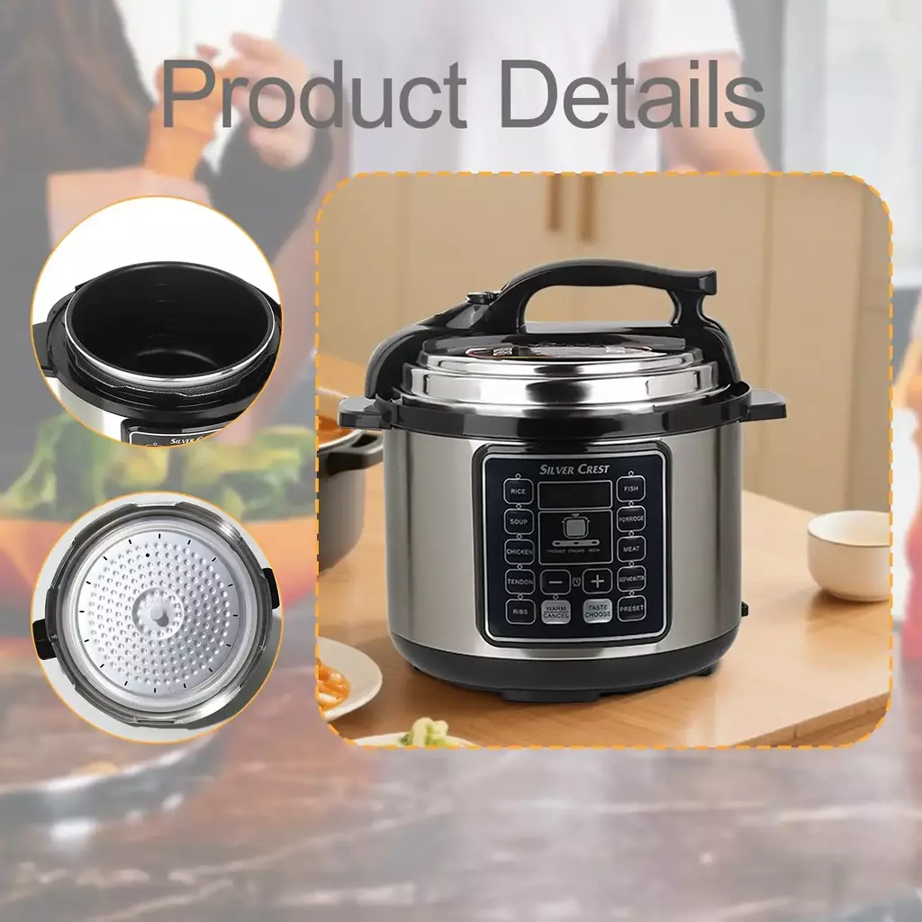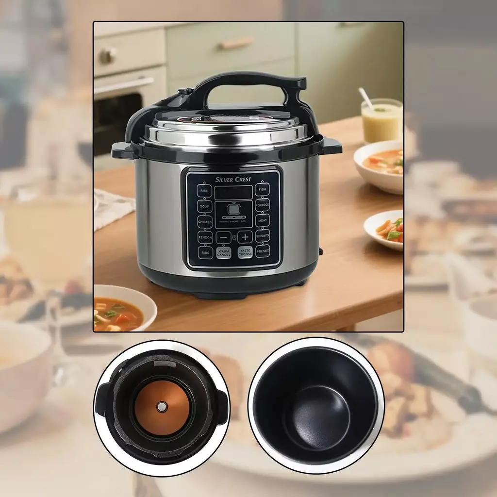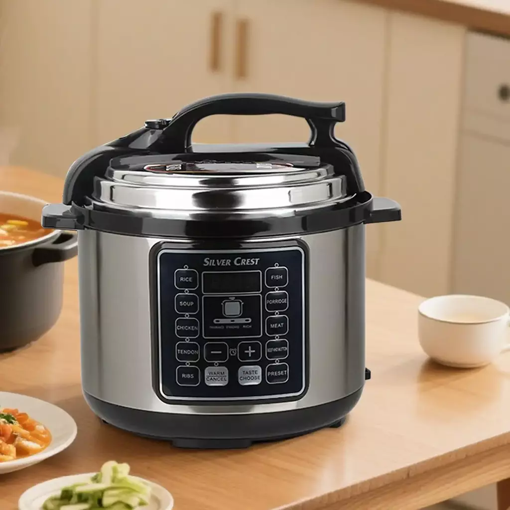 A Panela de Pressão Portátil Grande vem equipada com sensores de proteção contra superaquecimento, curtos e falhas elétricas. É muito mais tranquilidade para você cozinhar sem preocupações.