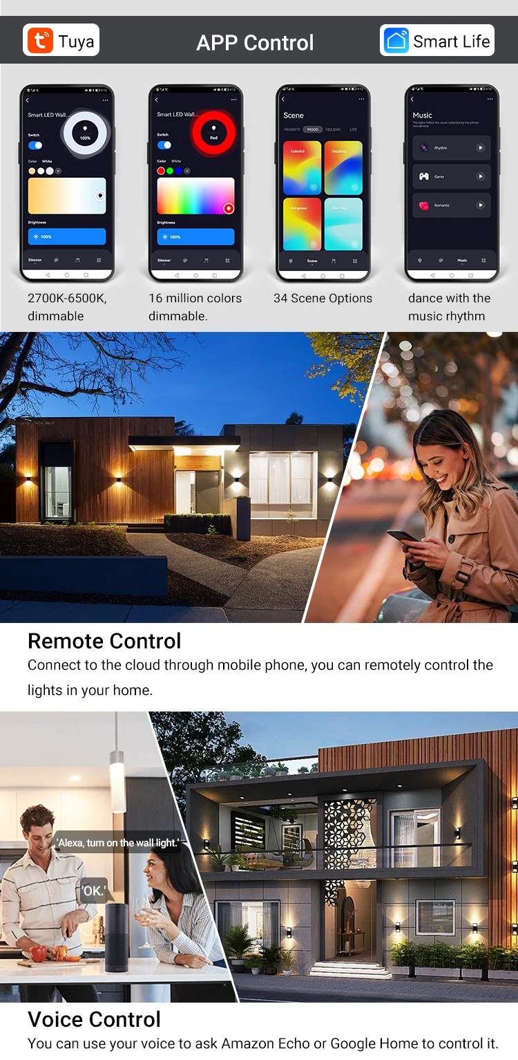 Tuya rccmw luz de parede externa inteligente, parede de luz de varanda com mudança de cor regulável, funciona com aplicativo de vida inteligente compatível com alexa e google